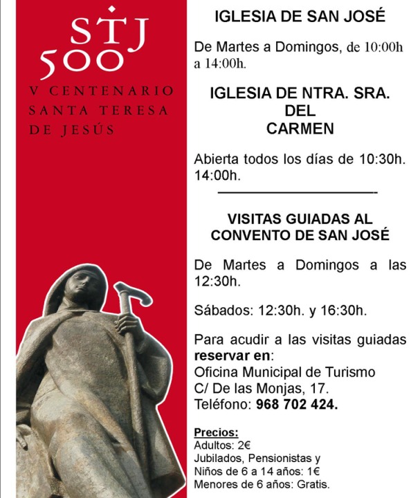 Las visitas guiadas a la Iglesia-Convento de San José, de martes a domingos a las 12.30 horas. Sábados a las 12.30 y 16.30 horas.